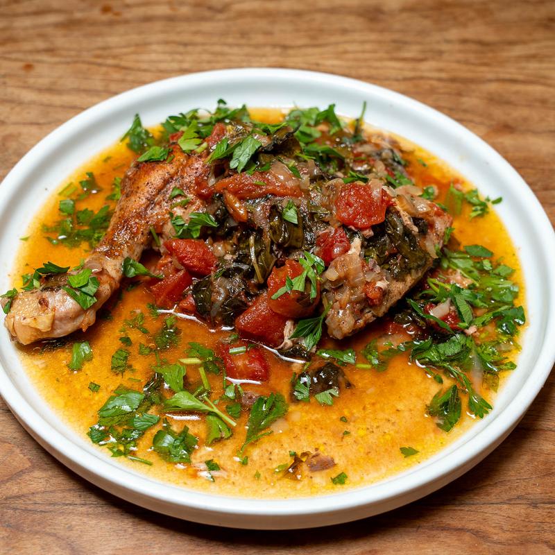 Traditional Georgian dish of stewed chicken with fresh herbs