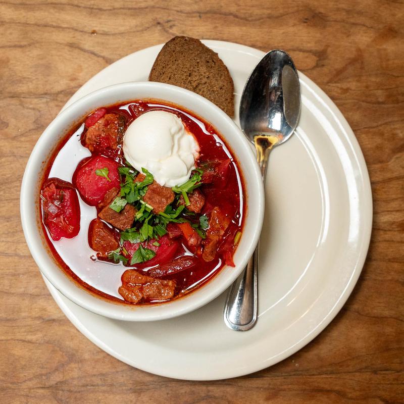 Beetroot cabbage soup with beef